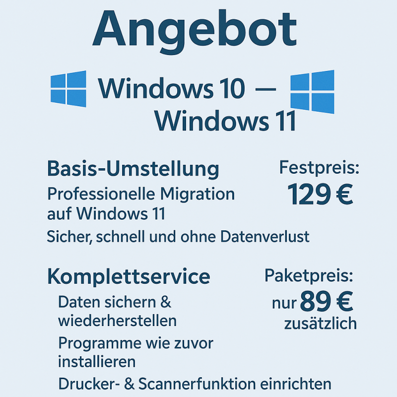 MFIT Service übernimmt für dich die komplette Umstellung von Windows 10 auf Windows 11 – individuell, zuverlässig und zum Festpreis.